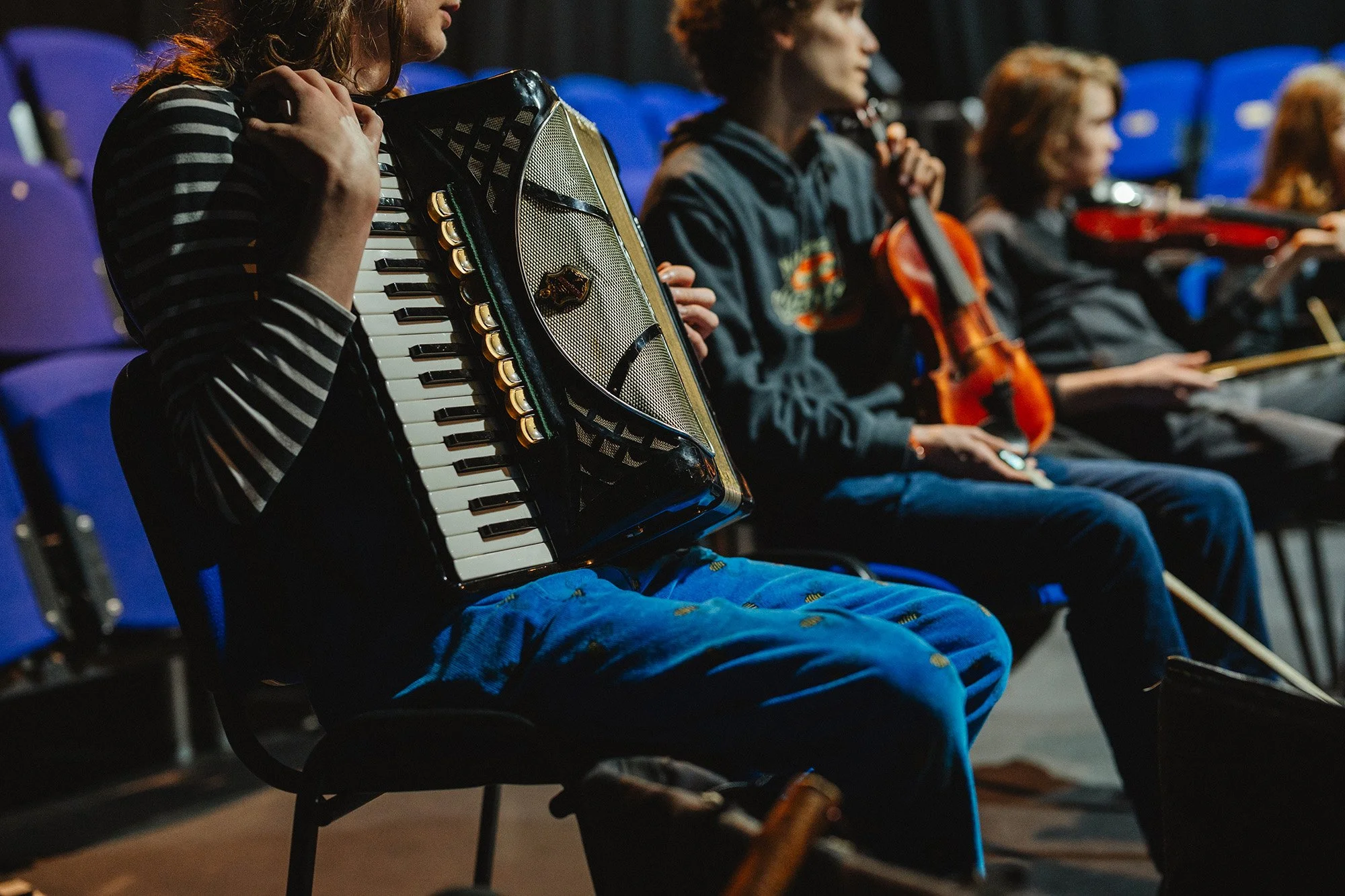 We're looking for instrumentalists and singers aged 12-17 at roughly intermediate level. This is around two or more years' experience — who are curious about folk music and keen to give it a go. The workshops will be geared towards creating a short, fun ensemble piece, with music provided where needed alongside learning by ear.
